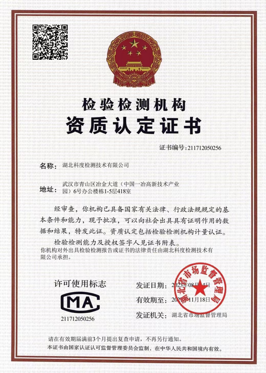 湖北科度檢測技術(shù)有限公司是一家專業(yè)從事環(huán)境類及相關(guān)領(lǐng)域檢測的第三方檢測機(jī)構(gòu),公司已通過湖北省市場監(jiān)督管理局CMA計(jì)量認(rèn)證,可以面向社會出具權(quán)威CMA檢測報(bào)告。 我公司實(shí)驗(yàn)室嚴(yán)格按照國家標(biāo)準(zhǔn)建設(shè),擁有一大批國內(nèi)外先進(jìn)儀器設(shè)備及現(xiàn)代化配套設(shè)施,并有經(jīng)驗(yàn)豐富的中高級專業(yè)技術(shù)人員和嚴(yán)格的實(shí)驗(yàn)室質(zhì)量保證體系為項(xiàng)目運(yùn)作提供強(qiáng)力支撐。 作為第三方檢測機(jī)構(gòu),公司始終以高度的社會責(zé)任感經(jīng)營企業(yè),以“公正、嚴(yán)謹(jǐn)、高效”為宗旨,依托專業(yè)的技術(shù)實(shí)力為客戶提供專業(yè)優(yōu)質(zhì)檢測服務(wù),受到政府、企業(yè)和社會各界的廣泛關(guān)注和認(rèn)可。